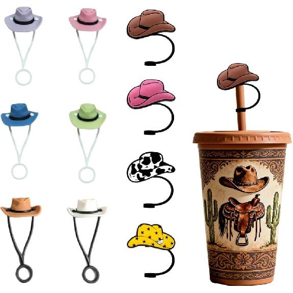 10pcs Silicone Cowboy Straw Cover Cap Cowboy Hat Straw Topper 10mm Reble Western Cup Accessories Silicone Tumbler Straws Toppers 30 40 Oz