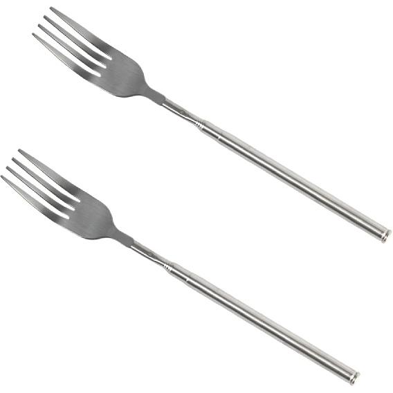 2Pcs Extendable Fork, Stainless Steel Telescopic Forks With Long Handle, Extended Fork for BBQ Dinner Fruit Dessert, Extends 8.4 To 25.2 Inch