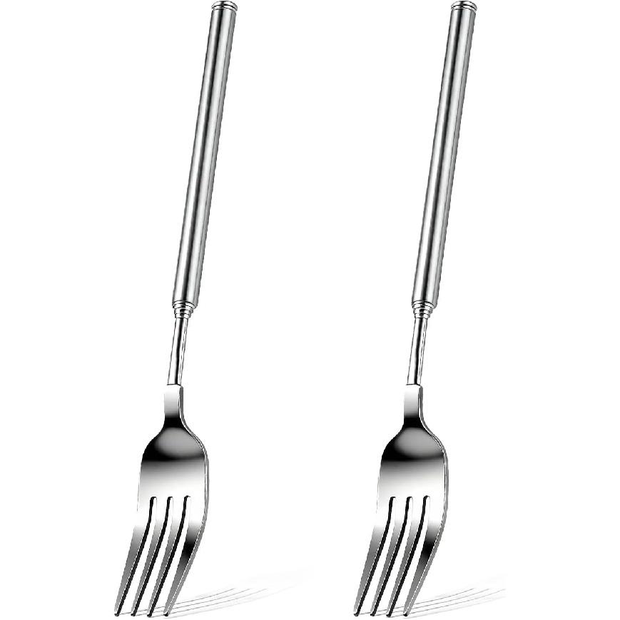 2 PCS Silver Extendable Fork Long Fork Prank 8.6 To 24.8in Expandable Telescoping Extension Forks for Jokes, Telescopic Stainless Steel Dinner Forks