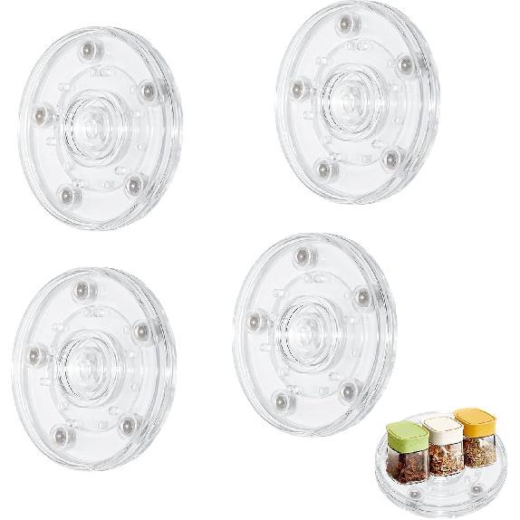4PCS 3 Inch Clear Small Lazy Sn Turntable Mini Lazy Sn Acrylic Ball Bearing Rotating Tray for Spice Rack Table Cake Kitchen Pantry
