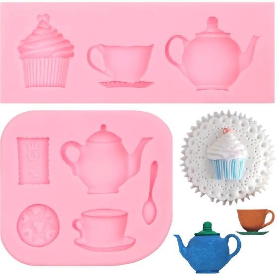 Tea Party Silicone Molds 2 Pcs, Afternoon Tea Chocolate Fondant Mold for Cake Decoration, Candy Sugar, Cupcake Topper, Cake Pop, Popsicle, Polymer