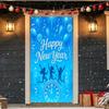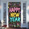 IVN 71x35 Inch Happy New Year 2026 Banner Door Cover New Years Eve Party Backdrop Black Gold Balloons Gift Box Polyester Fabric Front Door Porch