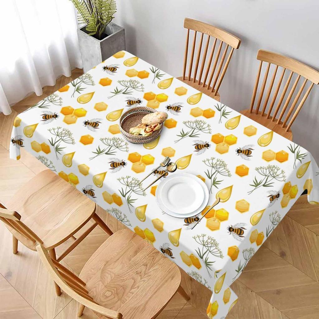 Bees Honeycombs Yellow Rectangular Tablecloth Nectar Honey Beehive Farm Polyester Table Cloths for Dining Kitchen Outdoor Picnic Camping Party