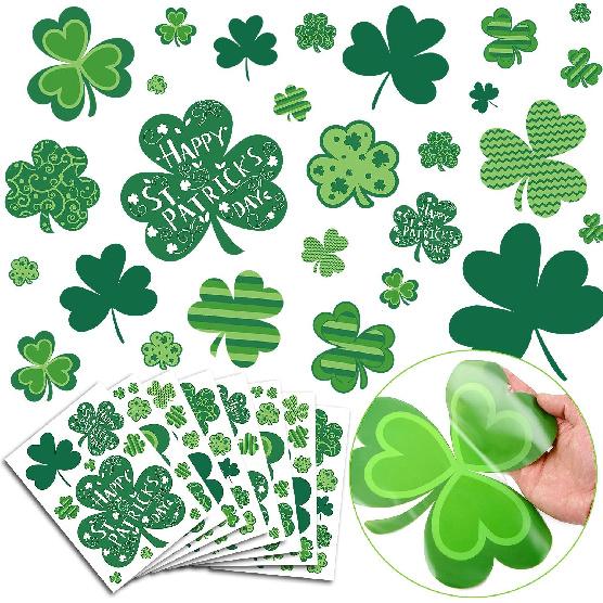 St Patricks Day Window Clings, 108 PCS Reble Shamrock Decal Stickers Static Spring Decorations for Office School Home