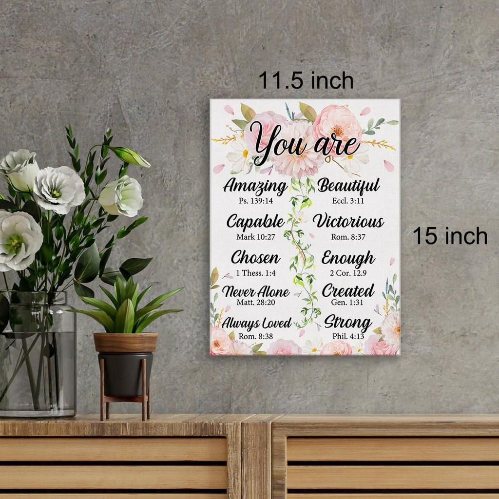 Christian Gift for Women Her Pirational Bible Verse Wall Art Canvas Painting Print Framed You Are Amazing Scriptures Canvas Floral Poster Sign for