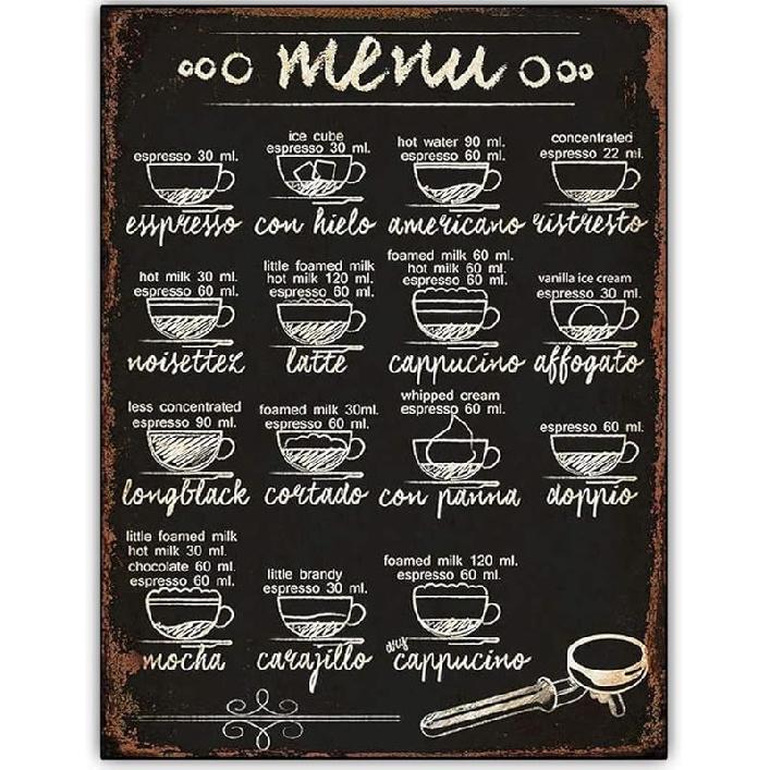 Metal Vintage Tin Sign Decor 15 Coffee Recipe Menu Wood Signs Wall Art Tin Sign Poster Vintage Metal Signs for Bar Music Club 8x12 Inch