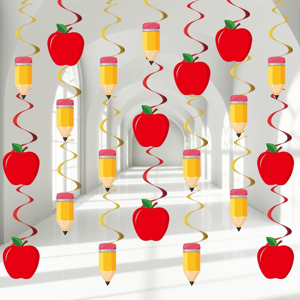 60PCS Back To School Party Swirls Decorations First Day of School Hanging Swirls Welcome Back To School Apple Pencil Hanging Decor Supplies for