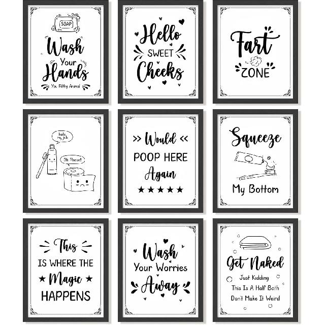 97 Decor Funny Bathroom Wall Art Prints - Funny Bathroom Signs, Black And White Art Posters For Restroom, Hello Sweet Cheeks Pictures Washroom