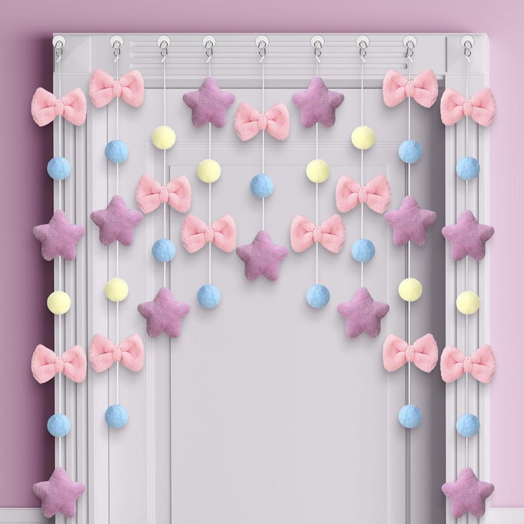 Enchanting Design: our adorable cutecore plush door curtain features a dreamy color palette of pink, purple, and blue, adorned with charming five-point stars and bows