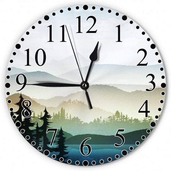 Nature Landscape Wall Clock Mountain and Lake Natures Hills, Tree In Rivers Clock 10 Inch Silent Non-Ticking Clocks Battery Operated for Home Living