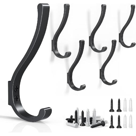 6PCS Large Black Coat Hooks, Heavy Duty Wall Mount, for Hanging, Backpacks, Bathroom, Mudroom, Entryway