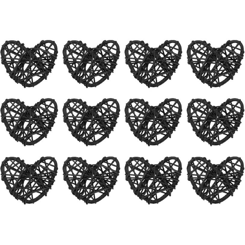 MECCANIXITY 12Pcs Heart Shaped Rattan Ball Vase Filler Natural Rattan for Valentine's Day Decoration Wedding Home Decoration Black 2 In