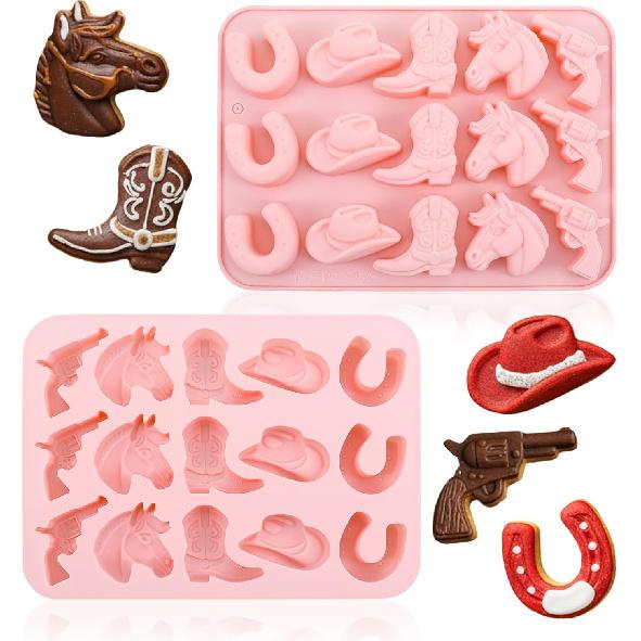 Cowboy Silicone Candy Molds Shimmeroo 3D Western Themed Chocolate Molds Silicone with Cowboy Horse Boots Hat Saddle Shapes for DIY Baking Cupcake