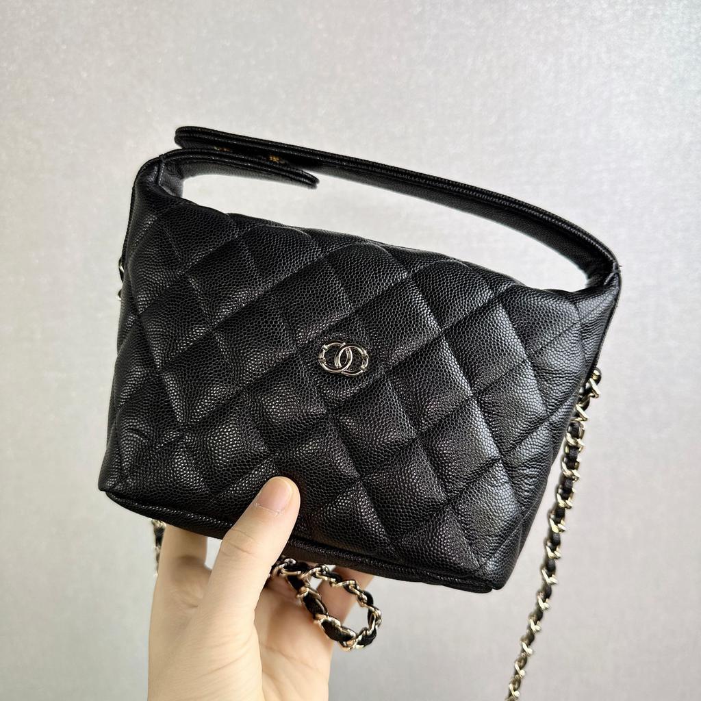New Lunch Box Bag, Caviar Cowhide Rhombus Chain Bag, Ball Pattern Leather Single Shoulder Crossbody Small Bag for Women