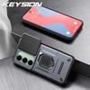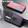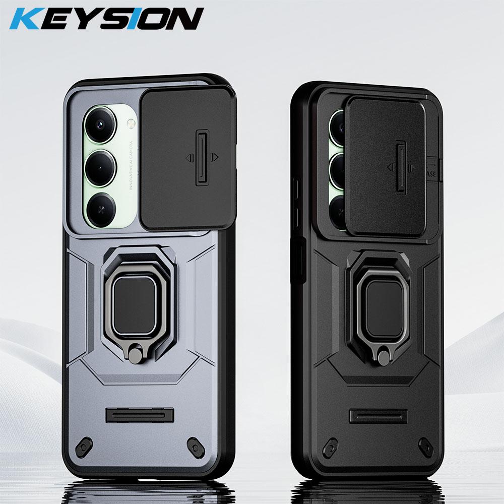 KEYSION Shockproof Armor Case for Redmi 15 169.5mm 171mm Slide Camera Lens Protection Metal Ring Stand Phone Cover for Redmi 5G