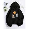 Women's Cute Cartoon Cat Print Hoodie Casual Sporty Pullover Sweatshirt Autumn Winter Warm Pullovers Casual Hoodie