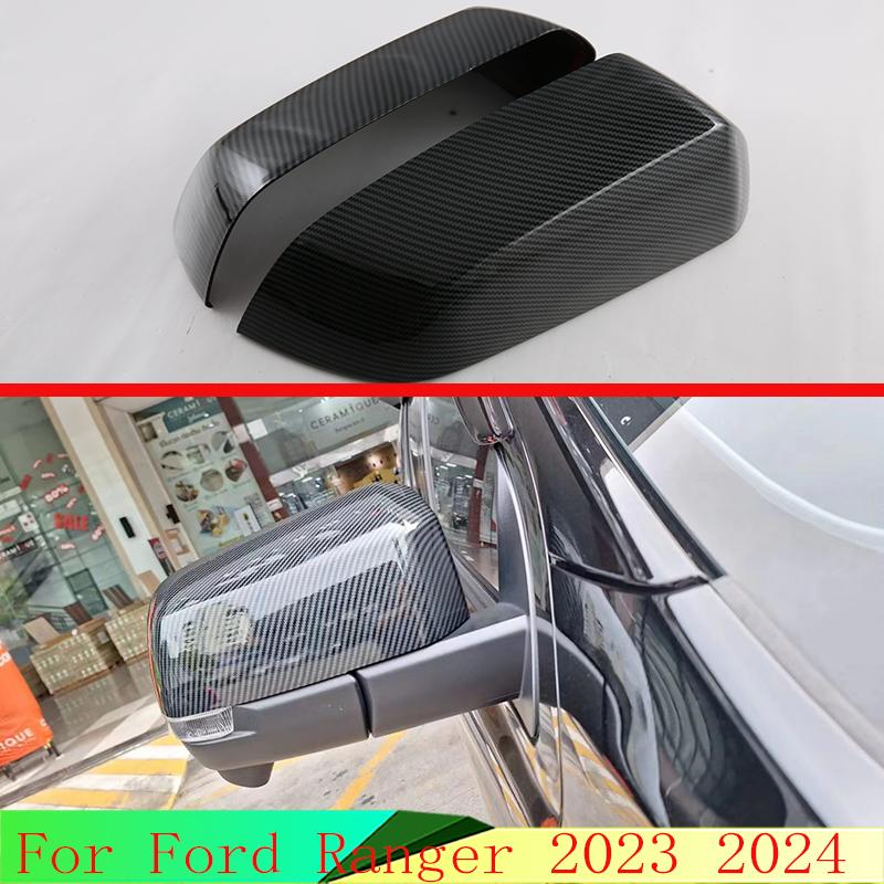 For Ford Ranger Everest 2024 Car Accessories Carbon Fiber Style Door Side Mirror Cover Trim Rear View Cap Overlay Molding