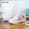 Chinese Style Embroidered Floral Cotton Boots Wedges Heel Women's Fur Winter Warm Ankle Snow Shoes Comfortable Bottines Size 35