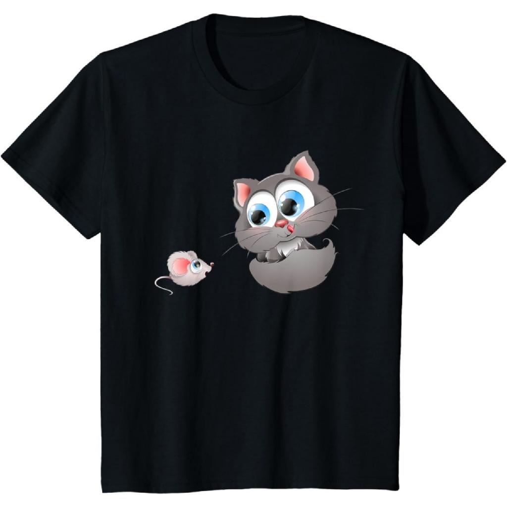 Cute Cat With Mouse Beanie Boo Girls Boys T-Shirt