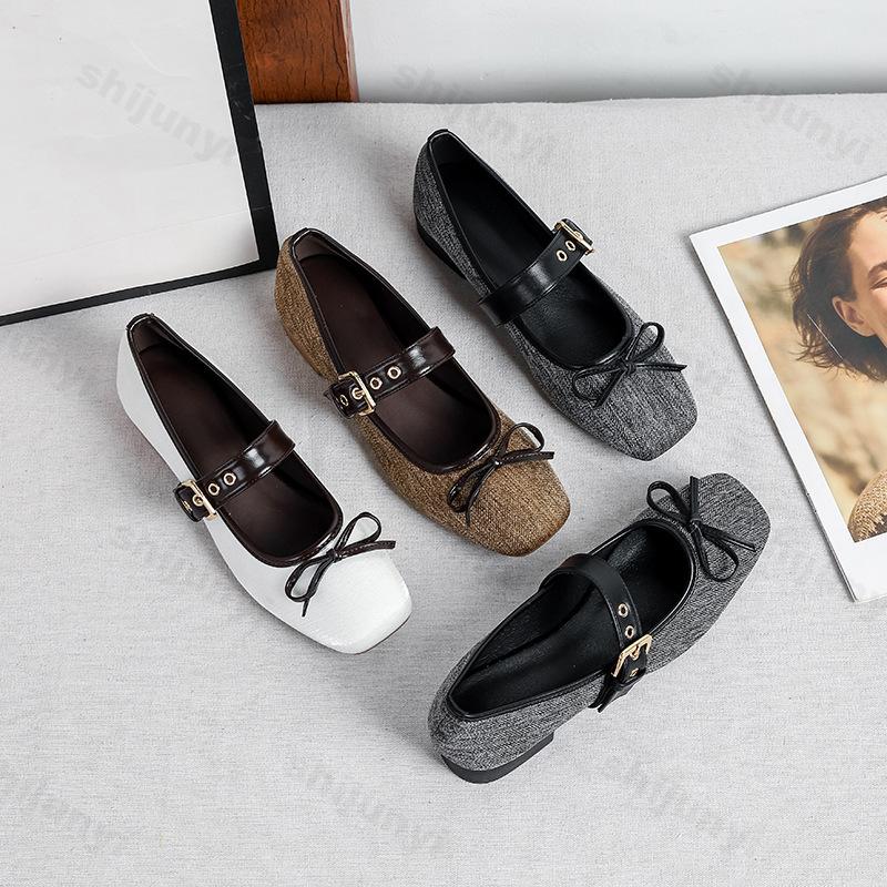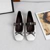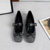 Women Ballet Flats 2026 Autumn Bowknot Square Toe Belt Buckle Design Mary Jane Shoes Elegant Soft Sole High Quality Single Shoes