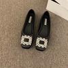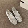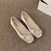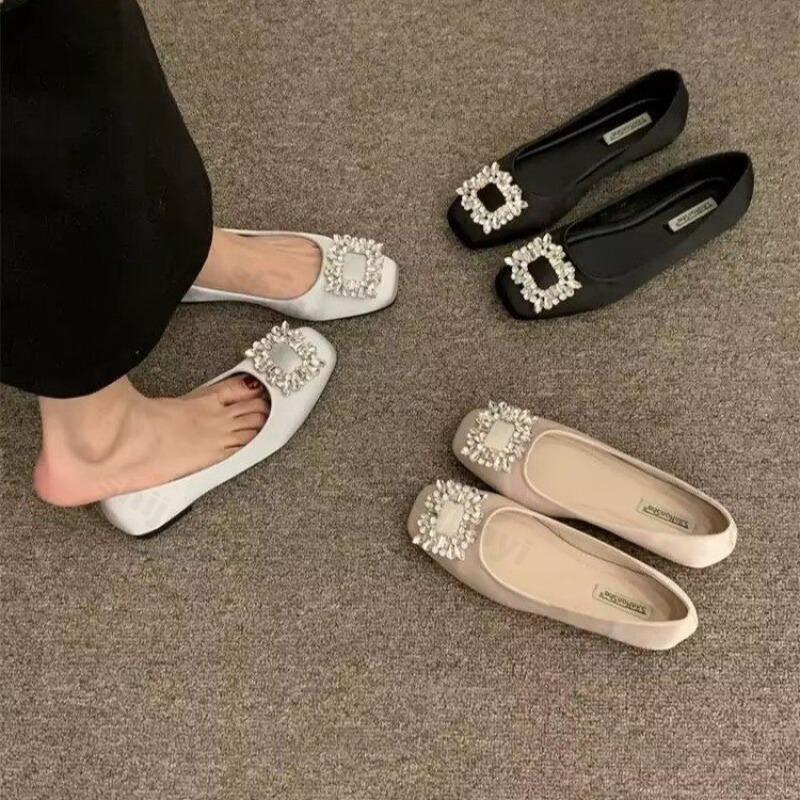 Woman Flats Square Toed Rhinestone 2026 Autumn Shallow Mouth Dress Fashion Flat Shoes Comfortable Silk Outdoor Casual Shoes