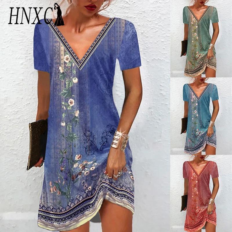 HNXC Women's Fashion Summer Spring Short Sleeve V-Neck Casual Dresses