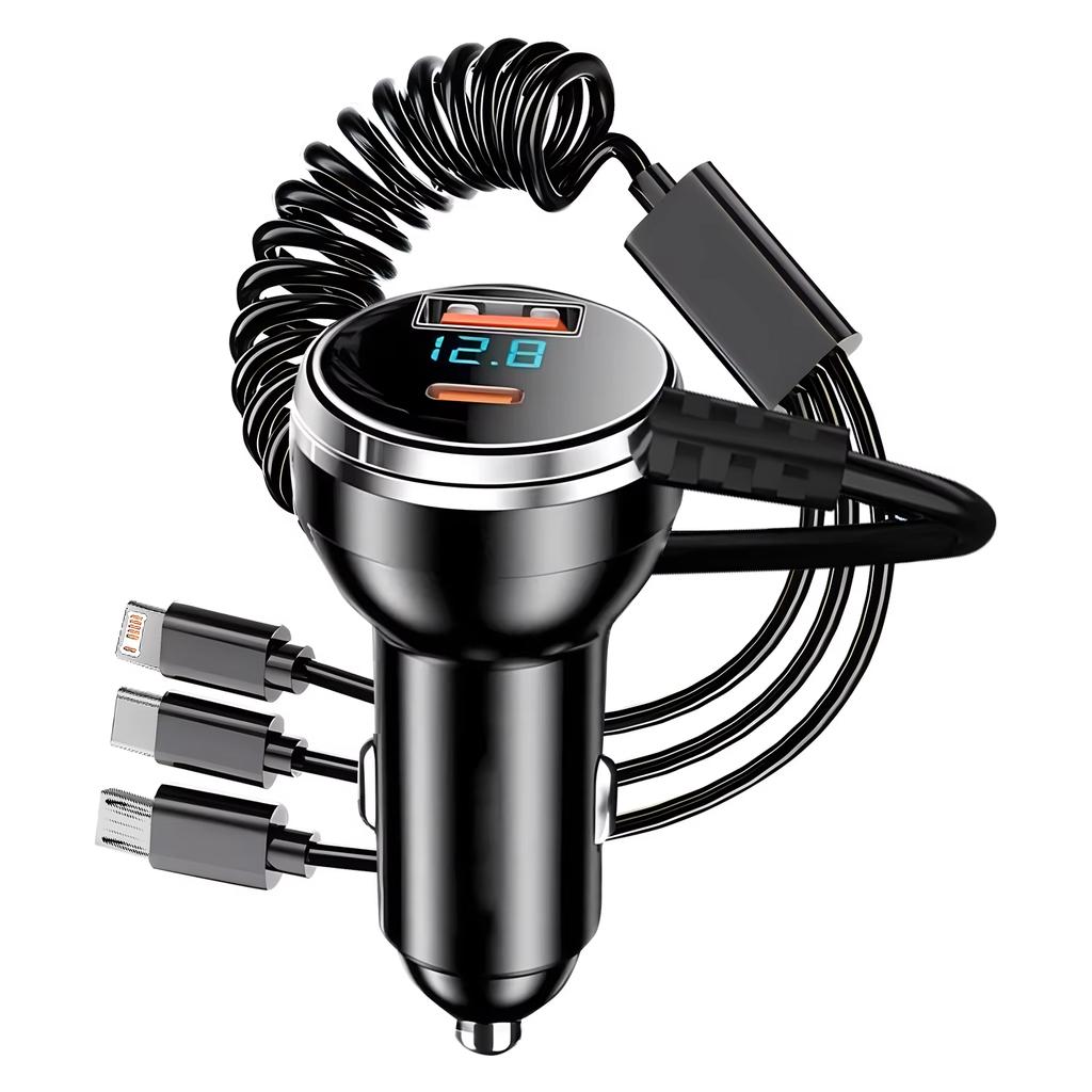 230W 5-Port Fast Charge Car Charger PD QC3.0 USB-C Type-C Adapter for iPhone Samsung Huawei Xiaomi - Vehicle Phone Charger