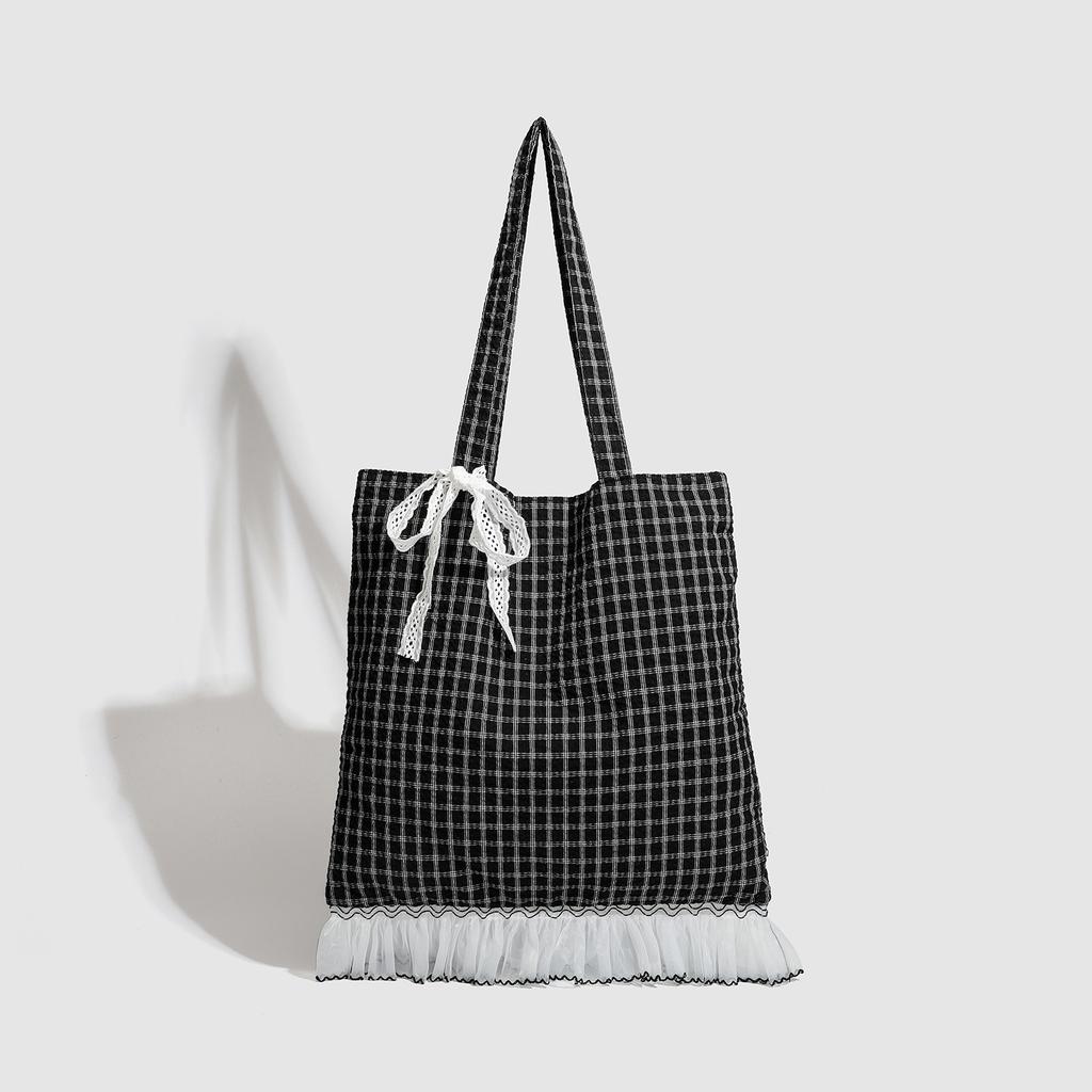 2025 New Niche Design Girl Lace Bow Plaid Shoulder Bag Women's Large-capacity Commuter Tote Bag Tide