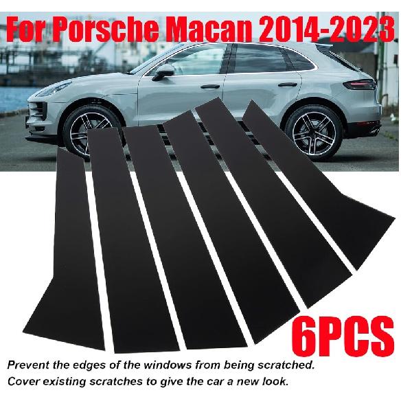 Black Car Window B Pillar Posts Trim Moulding Cover For Porsche Macan 2014-