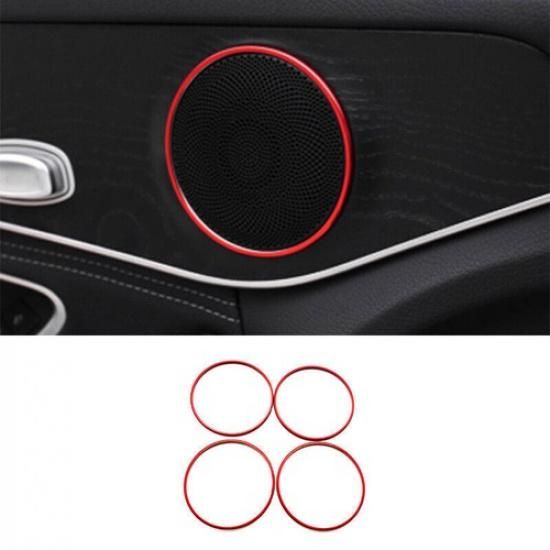 For Mercedes-Benz GLC 2016- Aluminum Red Inner Door Horn Frame Cover Trim 4X
