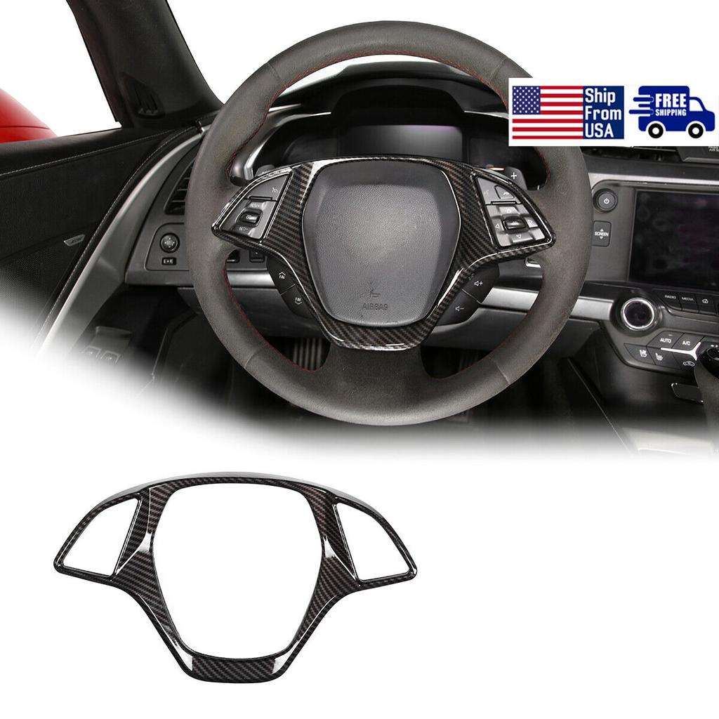 Carbon Fiber ABS Interior Steering Wheel Trim Cover For Corvette C7 2014-19