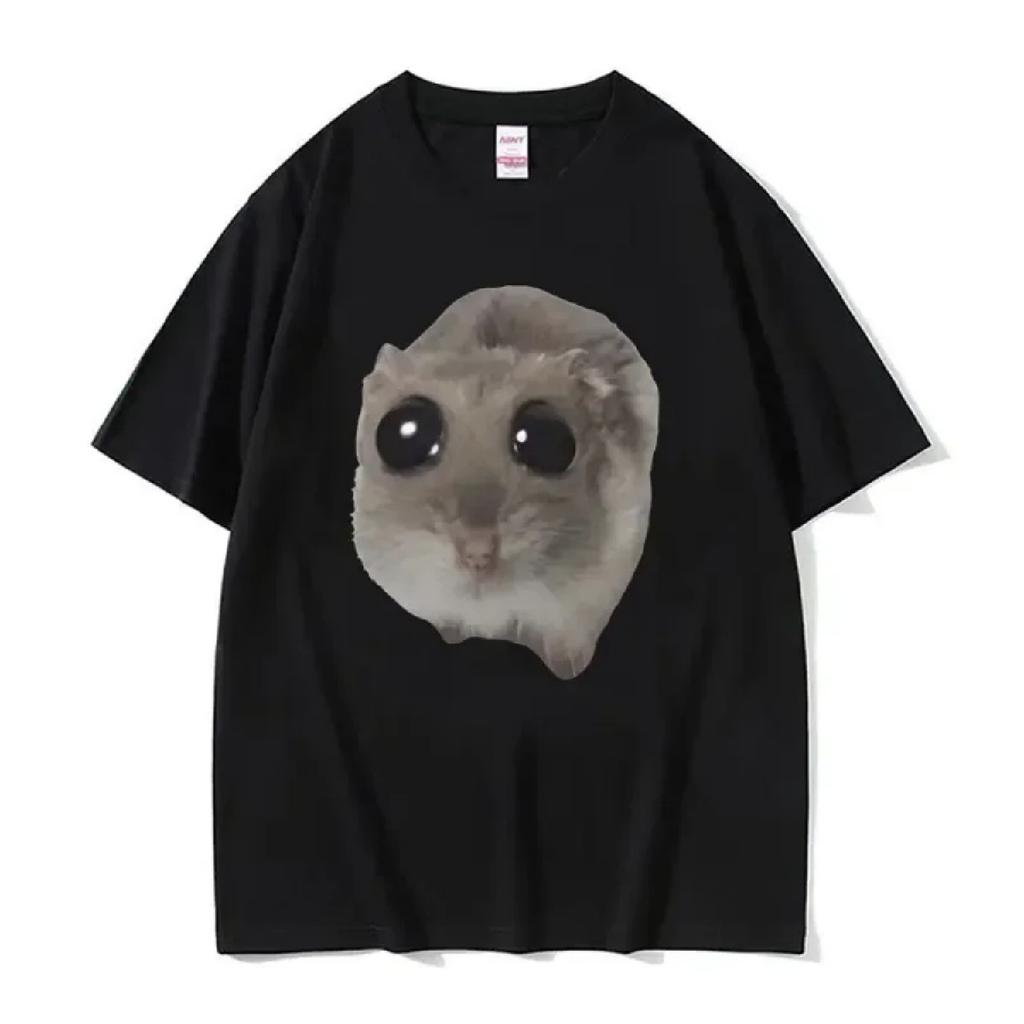 Funny Sad Hamster Meme Cry BiG Eye Cute Mouse T Shirt Women Fashion Kawaii Clothes T-shirts Women T-shirt