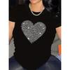 European Size Lightweight And Durable Short-Sleeve Round-Neck Casual Top Featuring a Shiny Heart Print for Women, Designed In Black