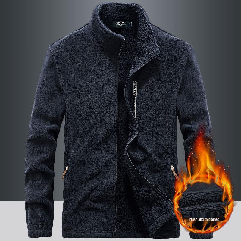 Stay cozy and stylish during the colder months with this thick fleece-lined cardigan. Featuring a trendy stand-up collar and long sleeves, it's designed for a comfortable and loose fit. Made from high-quality polyester material with a soft polyester fiber lining, this solid-patterned jacket provides exceptional warmth. Perfect for autumn and winter, it's a versatile piece that can easily be dressed up or down for any occasion.