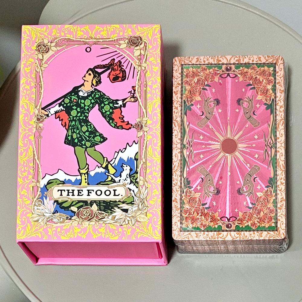 Sturdy Magnetic Box: The deck comes housed in a high-quality, pink magnetic flip box for easy storage and protection. The interior is inscribed with the heartwarming message: "Let’s Share the Tarot World Happily."