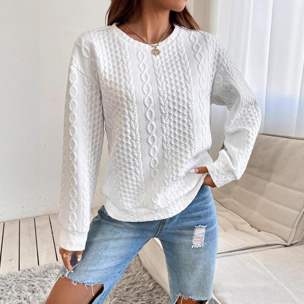2025 Women's Versatile Solid Color Textured Loose Drop Shoulder Sweatshirt - Spring & Autumn Style