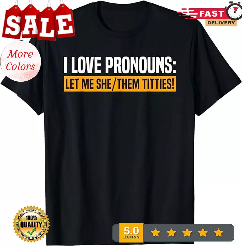 2025/I Love Pronouns Let Me She Them Titties T-Shirt, Size S-5XL Unisex T-Shirt
