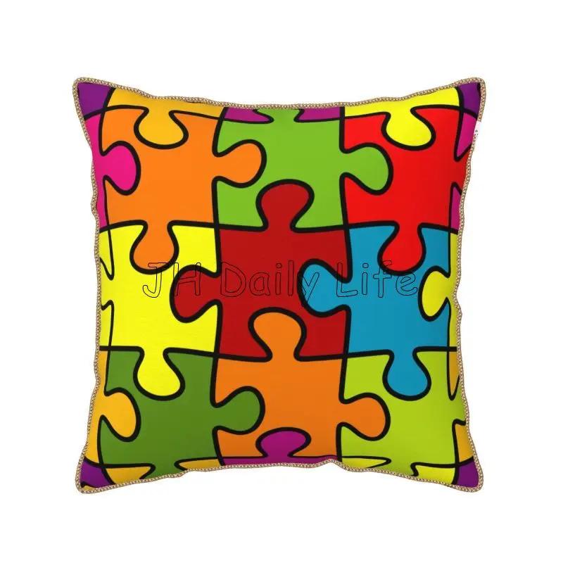 Autism Awareness Month Puzzle Piece Soft Velvet Throw Pillow Case 18x18 Inch Colorful Pillow Cover for Sofa Couch Bed Home Decor