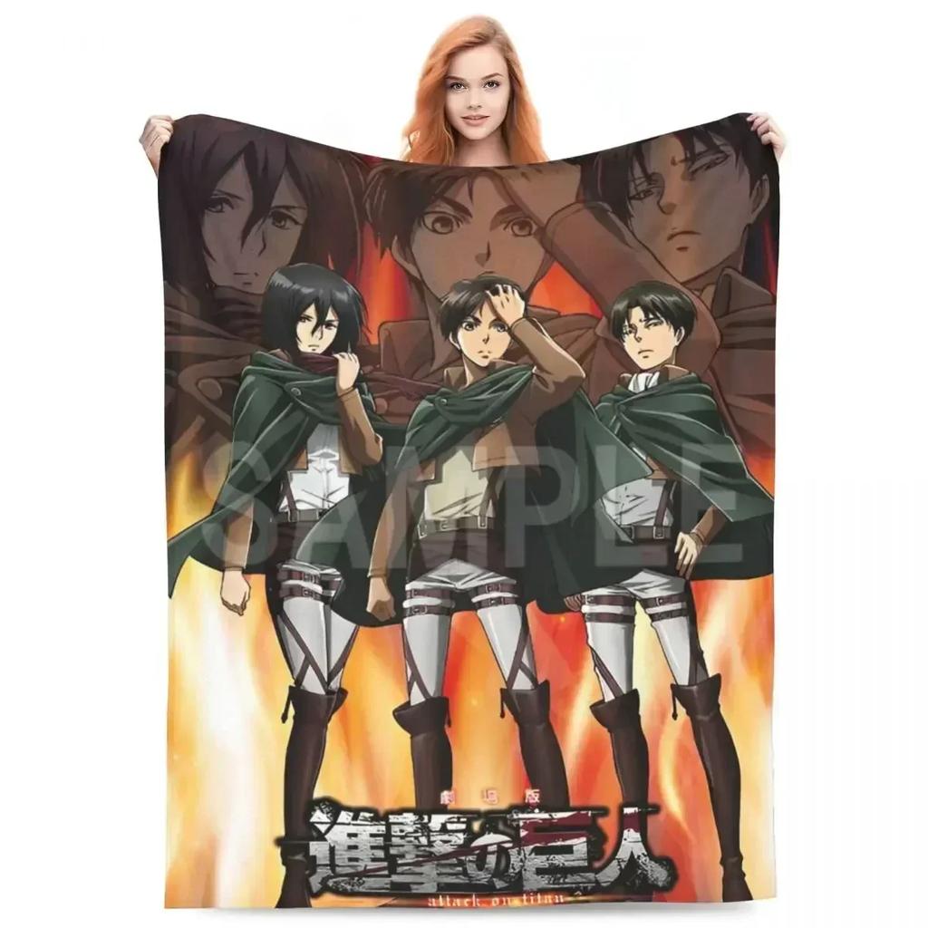 Attack On Titan Anime Manga Fleece Throw Blankets Action Blanket for Bedding Travel Lightweight Thin Bedroom Quilt