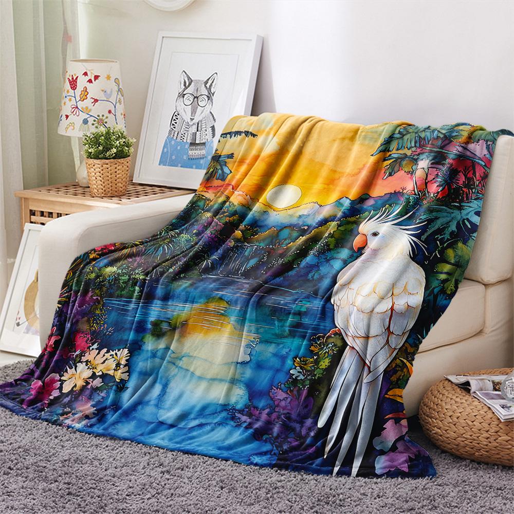 Rainforest Parrot Print Flannel Blanket, High Quality Comfortable for All Seasons, Home Decor, Warmth and Comfort, Perfect for Christmas Gifts