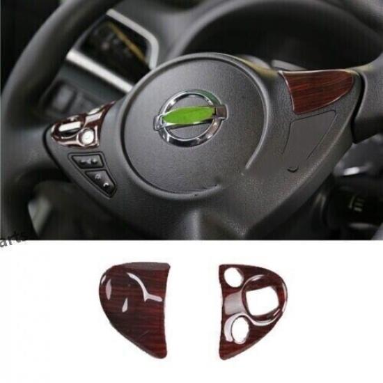 Wood Grain Steering Wheel Button Cover 2pcs For Nissan Sentra Sylphy 2016~