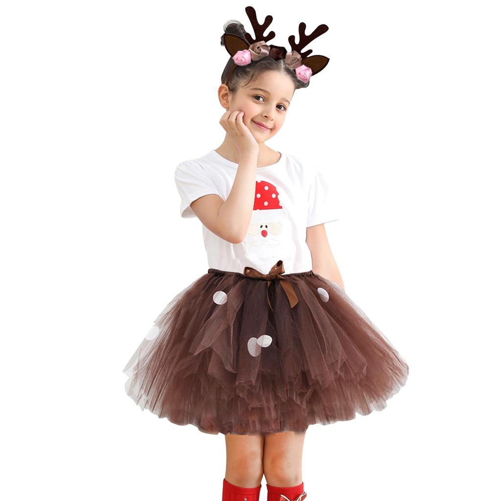 Material: Polyester. Size: Waist: 56cm; Skirt Length: 30cm. Suitable for: Girls. Recommended ages: 3-10 years old (height: 100-140cm). Colors: Red, green, brown.