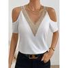 Women's Cold Shoulder Top Short Sleeve Contrast Lace V-Neck Casual Tee