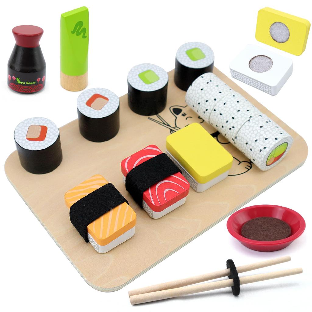 Pretend Play Toy: This bright and colorful sushi playset encourages endless pretend play, encourages baby's independent creativity, and fosters a sense of accomplishment. It also promotes the development of gross and fine motor skills. A great educational toy for toddlers, these beautiful wooden sushi pieces offer children ample learning opportunities.