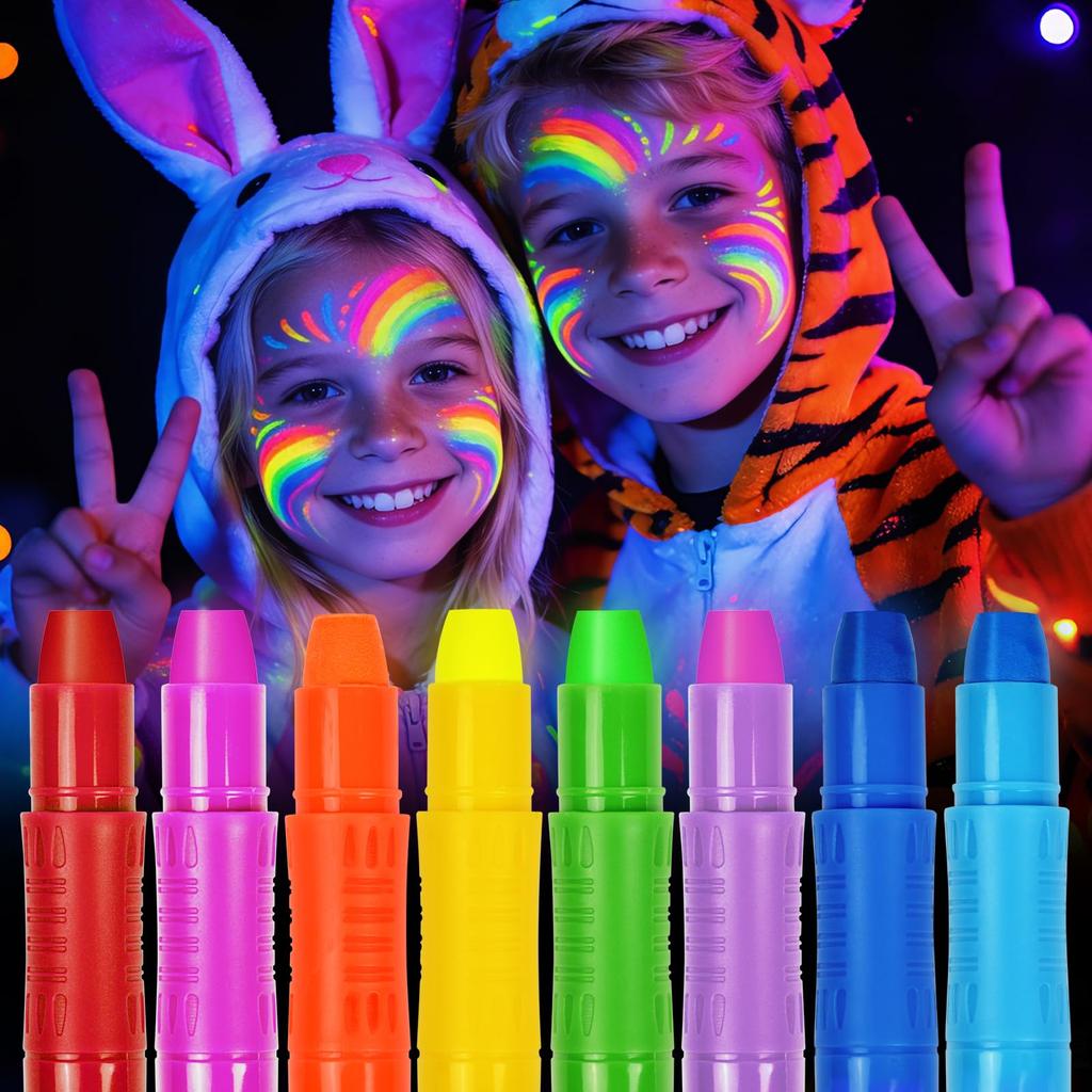Nsxsu Face Paint Sticks 8 Light Fluorescent Neon Body Paint Crayons for Washable UV Paint Makeup Halloween Glow Party Accessories for Kids