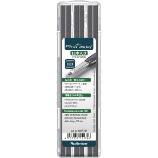Pika Marker Mechanical Pencil Lead 10H 605503 "BIG Dry" Replacement, 12-Pack, Black, (Japanese Packaging),