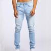 Fashion Men's Casual Stretchy Pleated Jeans Slim Fit Denim Pants
