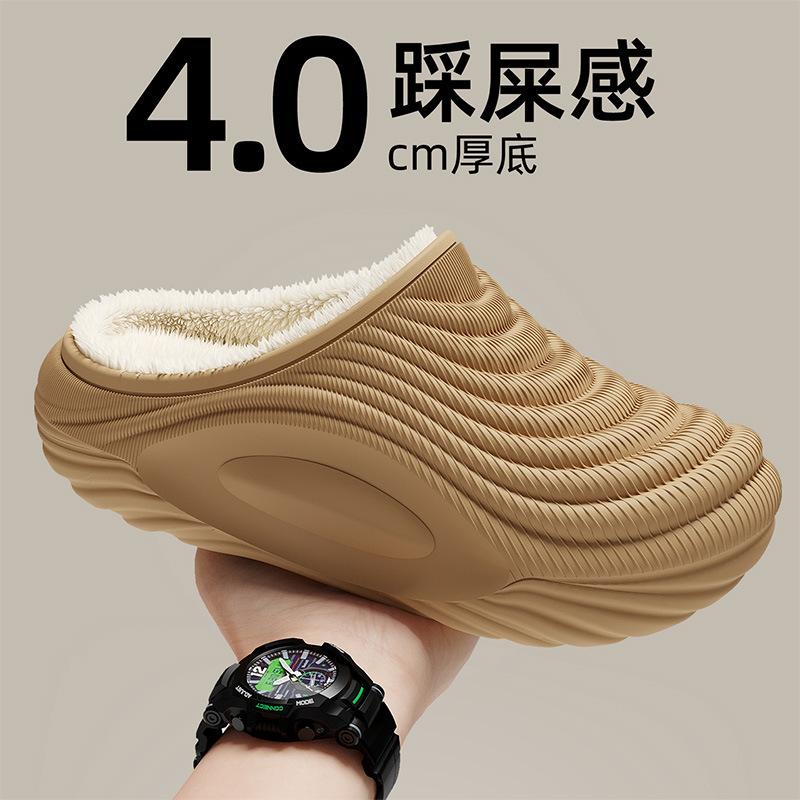 Waterproof Cotton Slippers Autumn Bag Heel Indoor Non-slip Thick-soled Warm Velvet Cotton Shoes Outer Wear