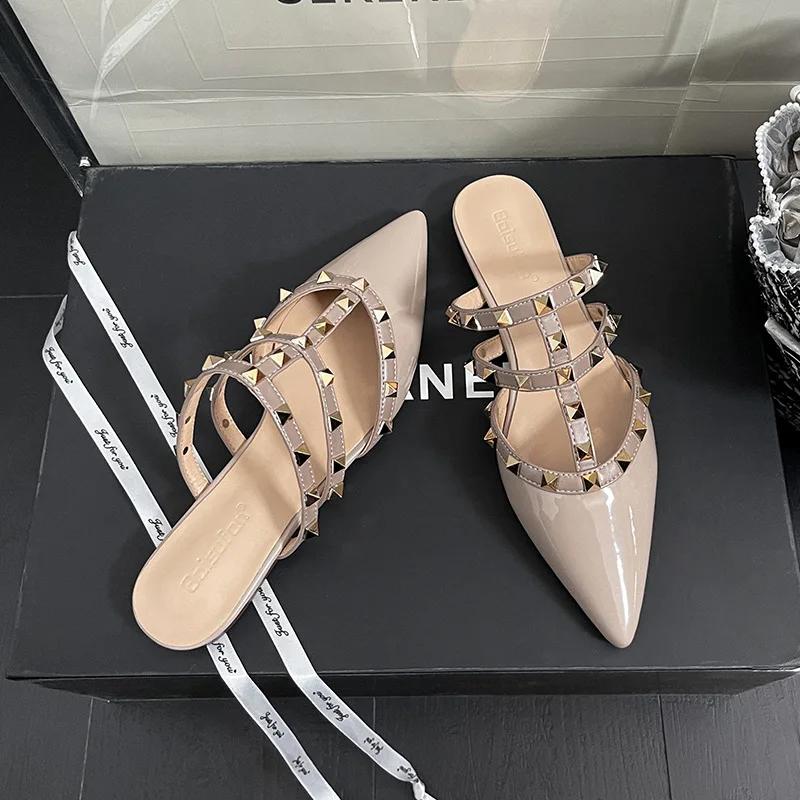 Summe Women Shoes Rivet Slipper Pointed Toe Casual Sandals Girl Street Beautiful Slides