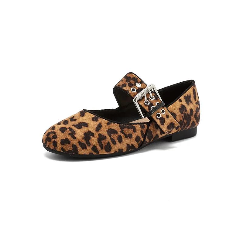 New Women Flat Shoes Leopard Print Mary Jane Boat Shoes Fashion Ballet Slip-on Loafers